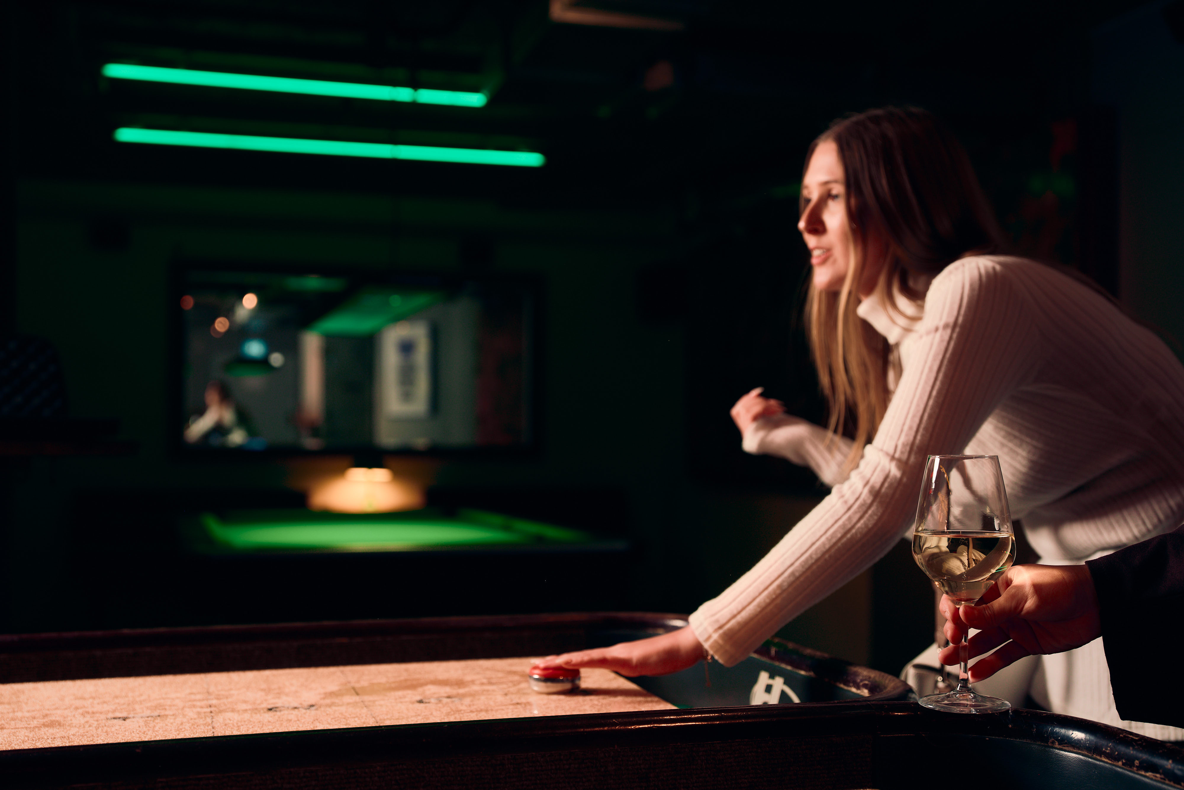 Kom till oss på Tilt och ta en drink och spela shuffleboard! Shuffleboard är perfekt att spela på mindre grupper. Det är väldigt enkelt att lära sig och passar såväl någon som aldrig tidigare har spelat som proffs. Vi har tre banor som går att boka under alla våra öppettider.